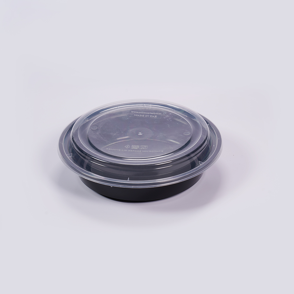 علب مايكروويف أسود دائرية 16 أونز 475 مل مع الغطاء